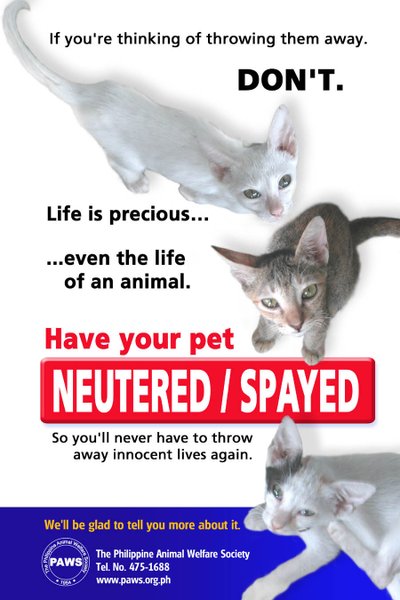 For more posters that you can disseminate, click on this link:https://picasaweb.google.com/adminpawsweb/SpayNeuterPostersForDownloadAndDistribution#