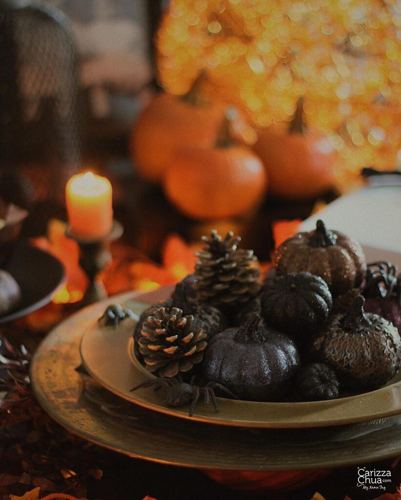 A lot of people may think that the pandemic represents a dark cloud with no silver lining. It may be worse for some who lost their loved ones during this time. I experienced it myself and it was a struggle physically and emotionally. But to be honest, my introvert soul actually likes this whole solitary life of lockdown. I savor the break from the crowd, f2f meetings and busy life. It truly resonates with me. I’m thriving in and I don’t think I can adapt to new/old setup anymore. In fact, I don’t think we would have the time and energy to make this Halloween tablescape during pre-pandemic time.