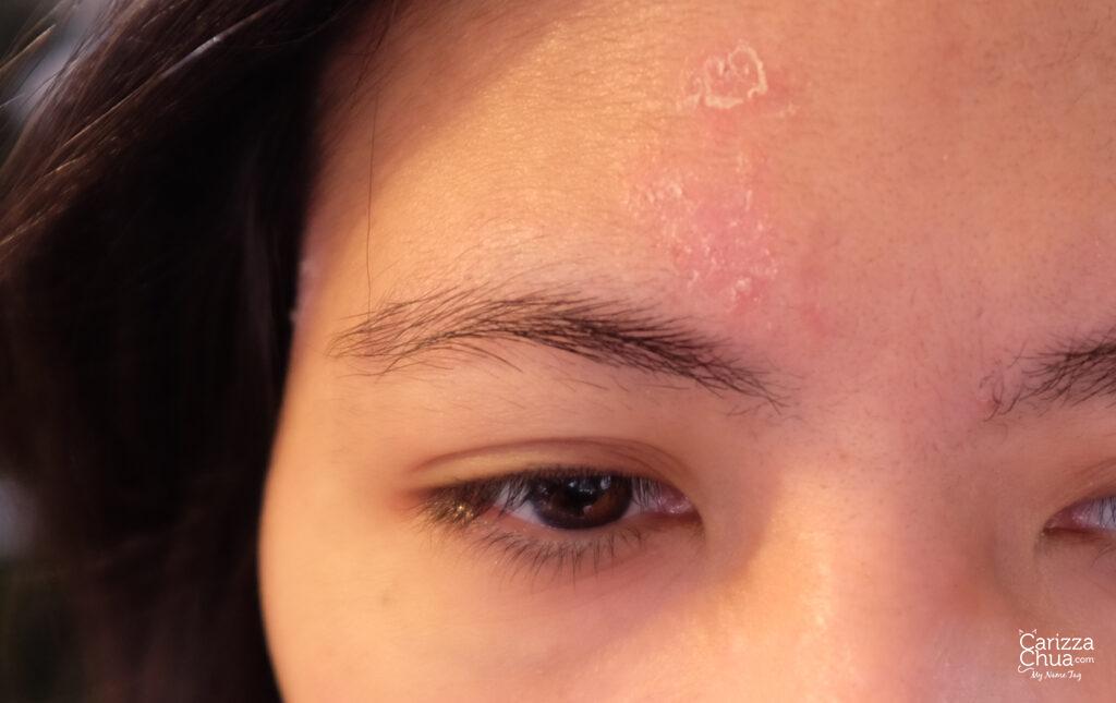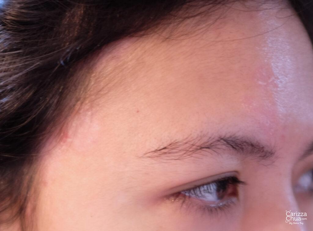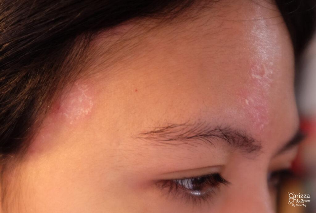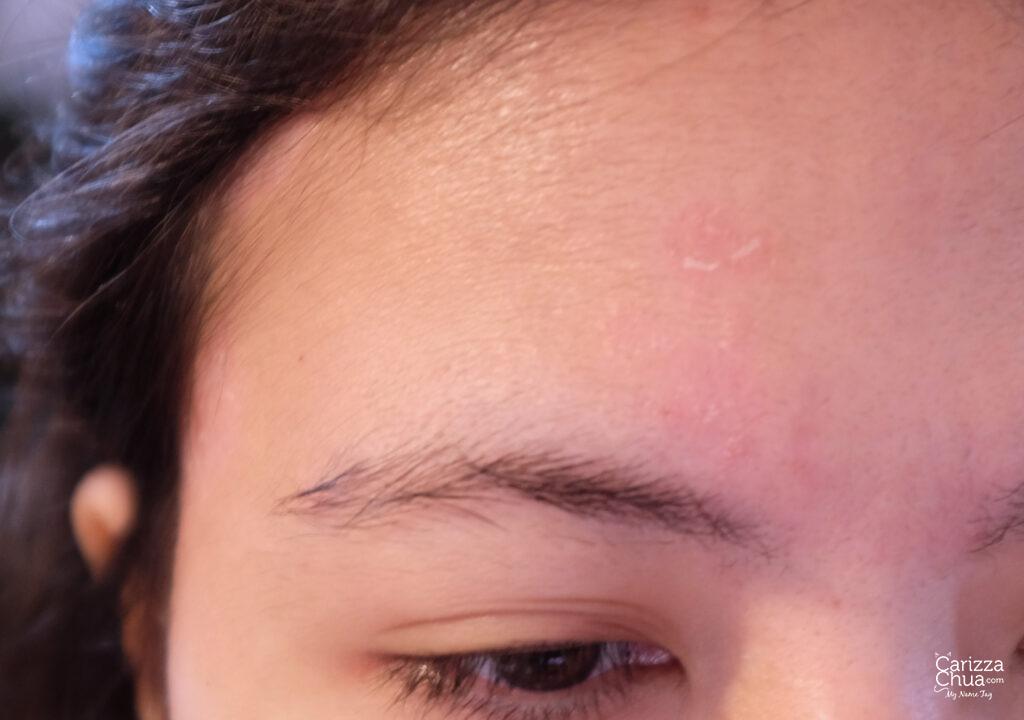 Just some more kwento about Aveeno… When I started my acne treatment last month, my skin started to dry out as in a lot of flakes on my face and some body parts. While aloe gels help, it’s still uncomfy and itchy. And it reached mt scalp already! Yung gusto mo na lang ibuhos yung gel para mawala.. I found a quick solution, take a bath with Aveeno. Here’s a portion of my forehead with dry spots…