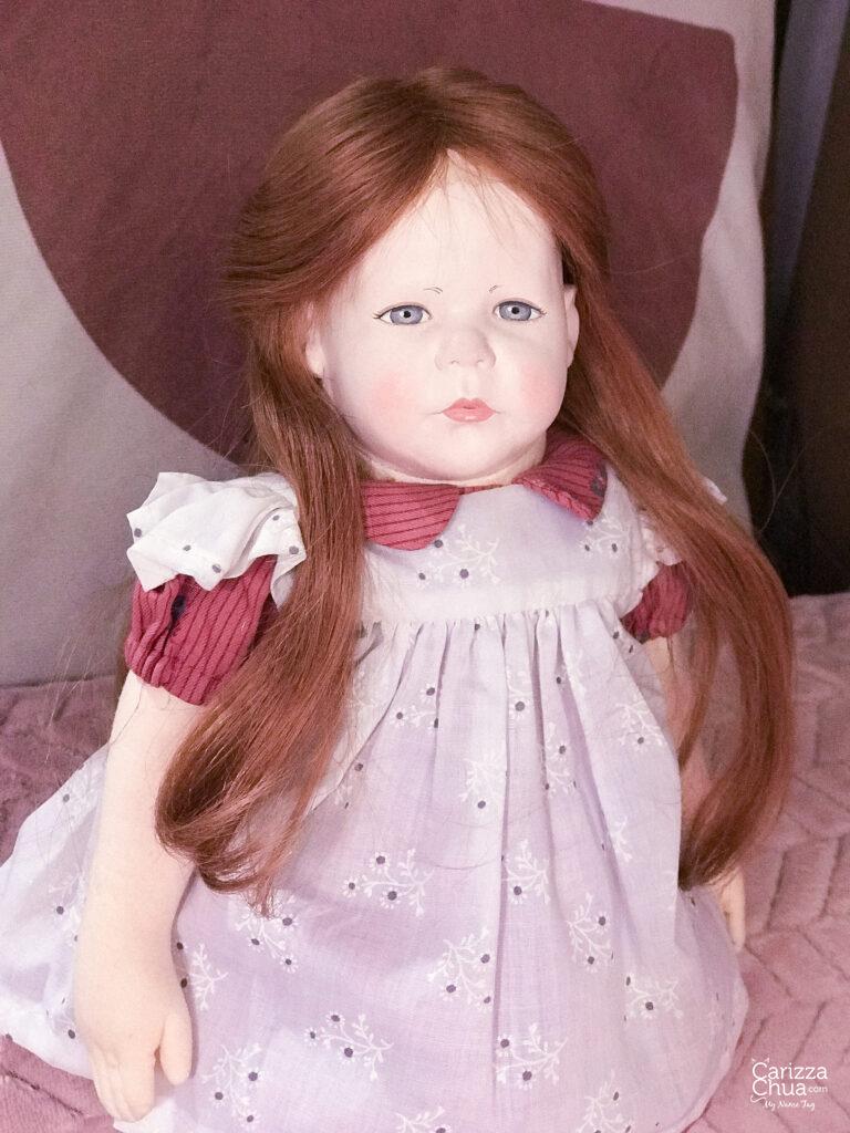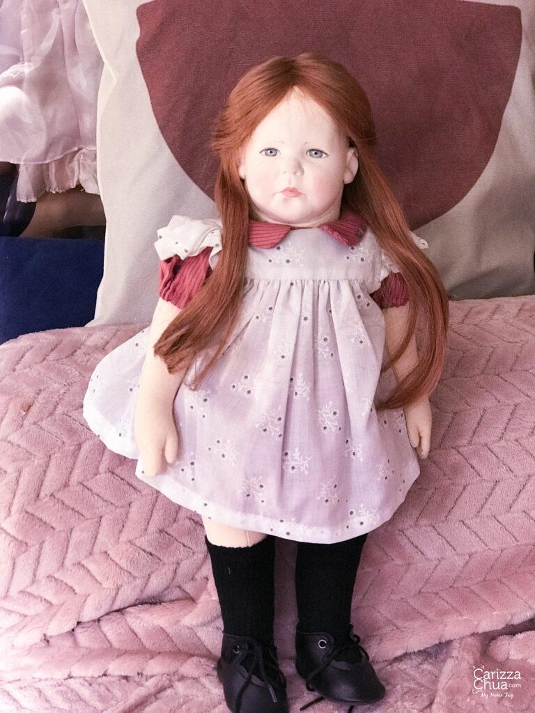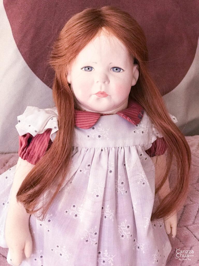 When she arrived, I immediately inspected her body. She’s in pristine condition. I saw a marking on her chest and Googled. I learned that she’s a Tiny Tots doll handmade and handpainted in England by an acclaimed artist named Christine Adams in the 80s and realized price at Theriault’s Auction is $650. Other designs have reached up to $1000+ 😱