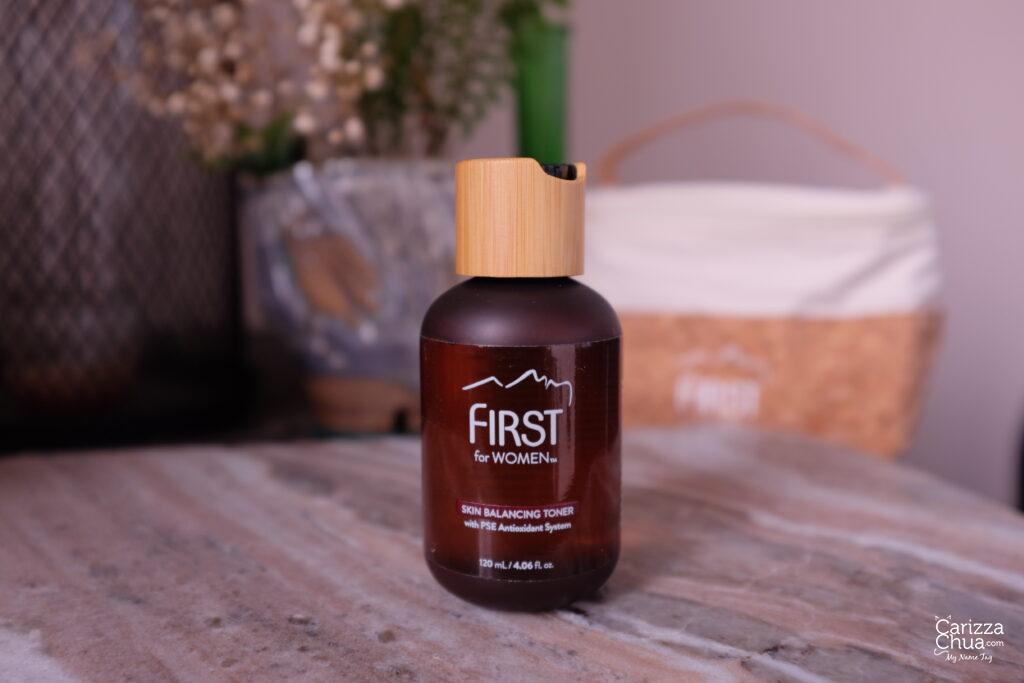 Next is FIRST Skin Balancing Toner for women (120ml) with PSE Antioxidant System. The cap has a sticker seal but I noticed that whenever you tilt the bottle to get the liquid out, the product seeps through the bamboo cap.