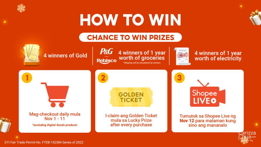 This could be your time of the year! A chance to win gold, a year’s worth of groceries, or subsidy for a year’s worth of electricity with Shopee’s ‘Shop to Win Gold’ promo this 11.11!