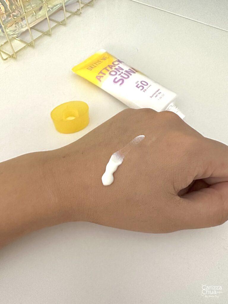First is Dazzle Me Attack on Sun! SPF50 PA++++ (P199). This product has a strong sun protection, nourishing and enhancing resistance. It’s the peak of summer so I apply sunscreen regularly even when indoors.