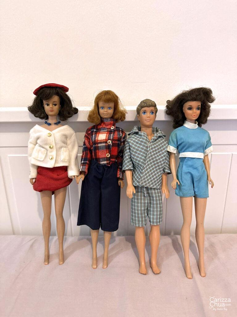 Here’s the vintage group. The Japanese Midge with removable wig, Midge (1962), Kevin (1990), and Steffie (Pouty Lips).