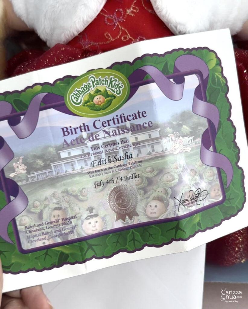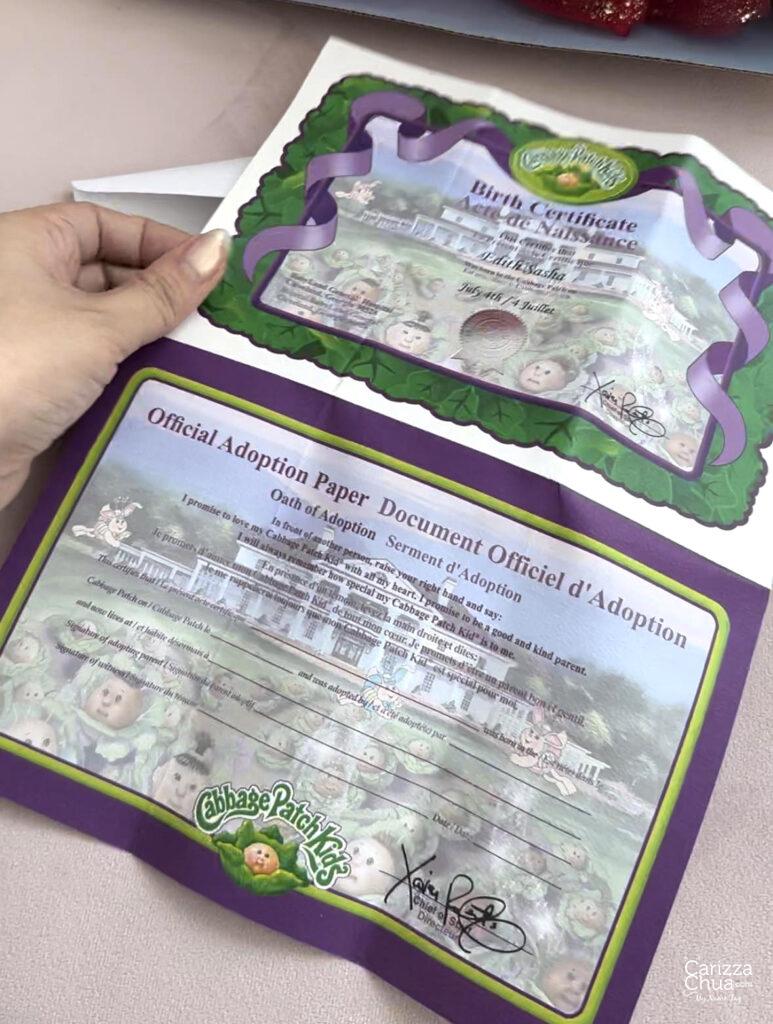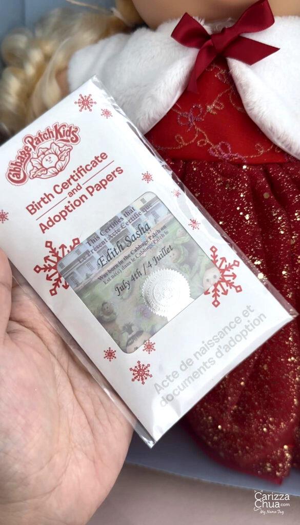 She was a Christmas present from my sister last 2017 that’s why I have here complete in box. This is her birth certificate and adoption papers: