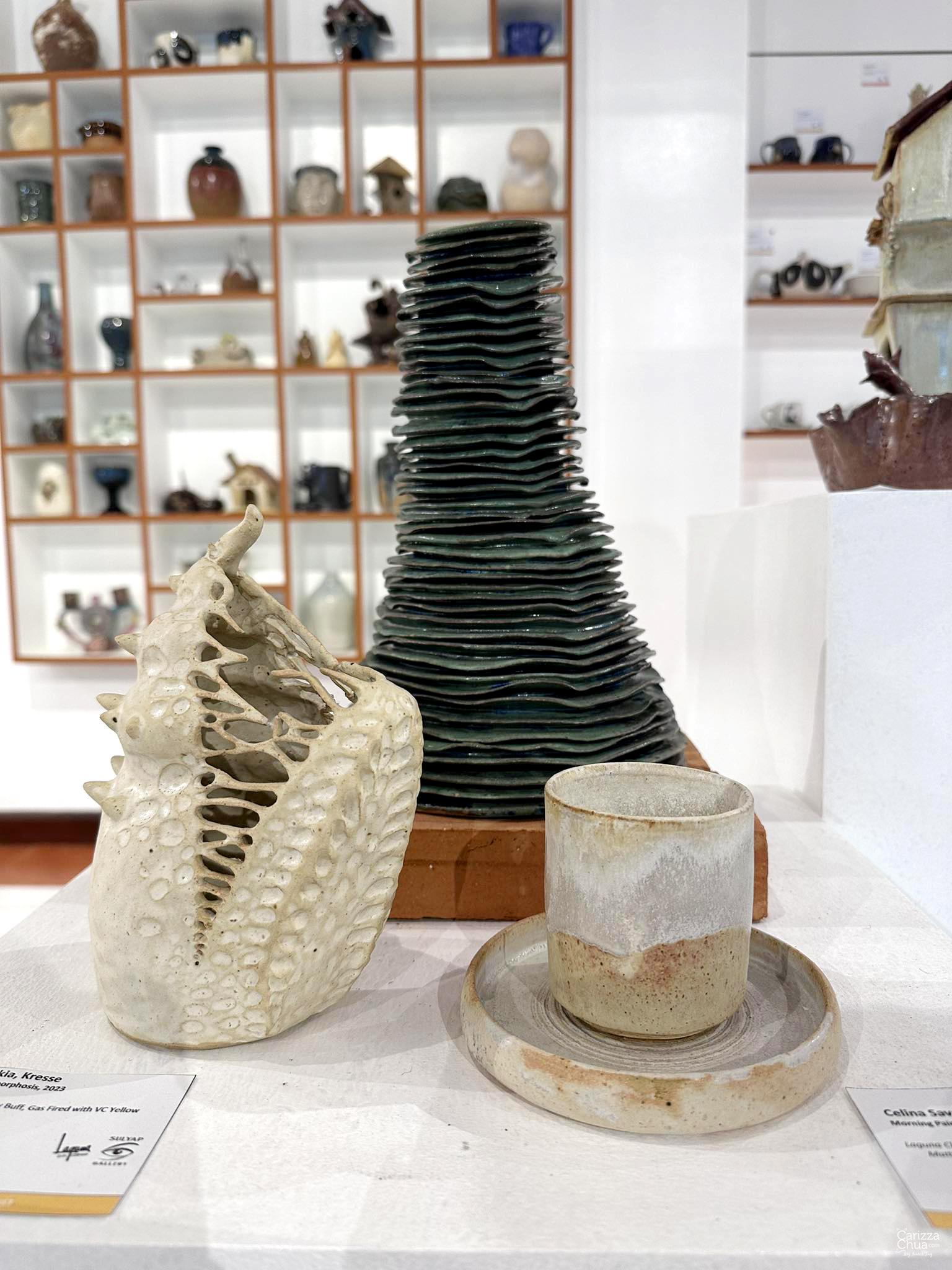 Inay Aida by Rita Badilla-Gudiño reminds me so much of Studio Ghibli! The tall jar at the center is gas-fired with Celadon glaze by Ugu Bigyan.