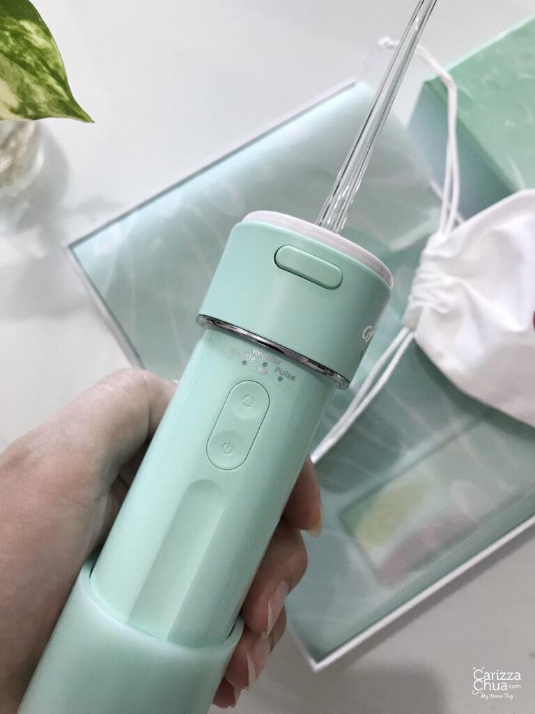 It is most suited as carry-and-use device as it comes with adjustable water tank, filling up to 140ml. To use, open the lid, pull the water tank down until you hear a click & fill in with water. Extend nozzle & point it to the teeth. Do not point on gum.